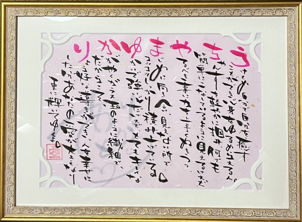 さらに、そのメッセージを筆で書き下ろしてお渡しすることも。